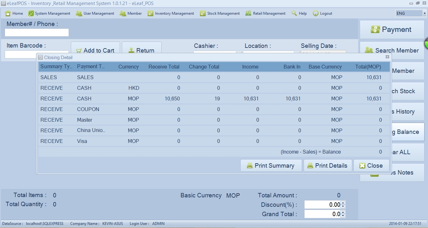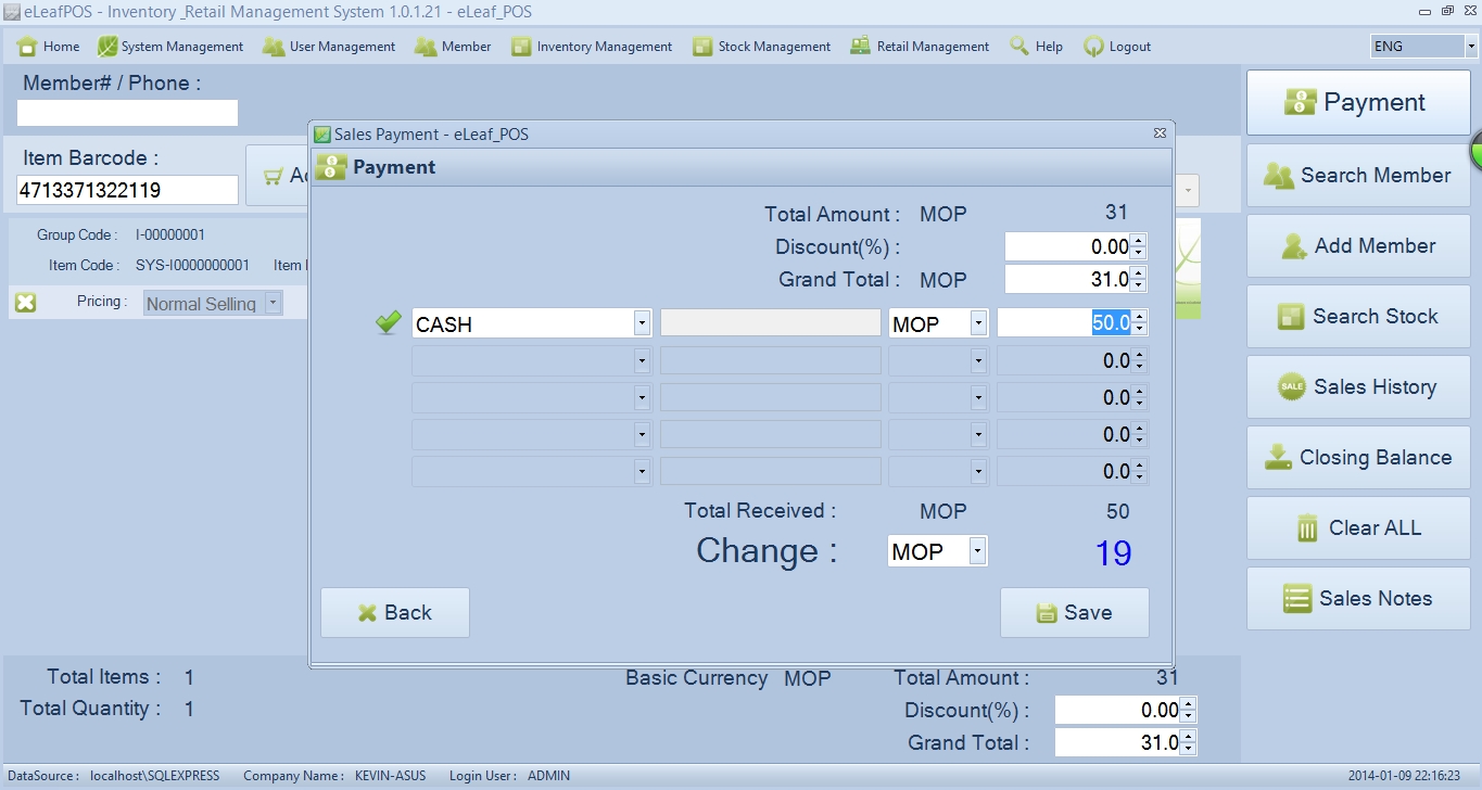 是一套為零售店舖而開發的,且功能全面的店舖管理營運系統。集合了零售、會員、庫存、三大系統於一身,涵蓋所有日常零售運作的範疇。而且操作簡易,介面清新簡潔,而且百分百本地製作,特別為本地零售商而設。簡而言之,如果閣下正在尋找一套銷售系統處理一整間店舖,甚至多間連鎖鋪的所有事務,《eLeaf POS 店鋪零售及管理系統》 絕對是你的不二之選!